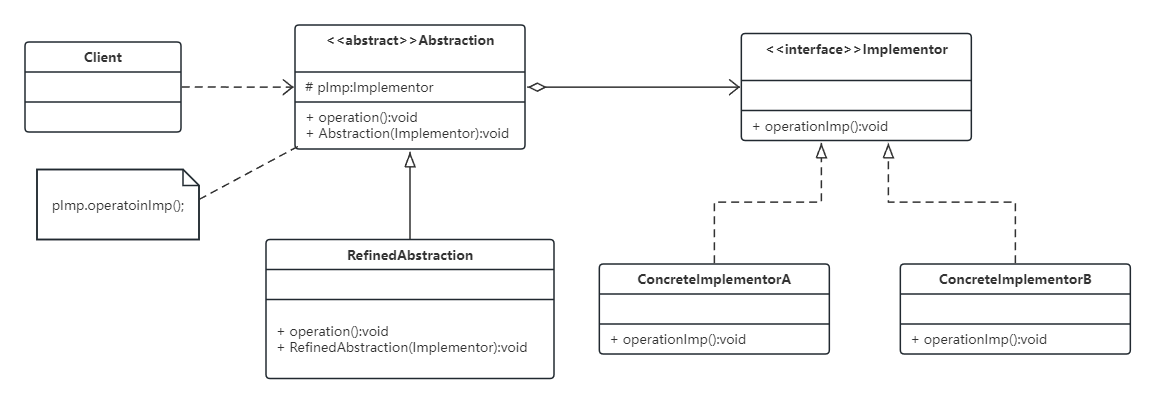 abstract class Abstraction{ protected Implementor pImp; abstract public void operation();